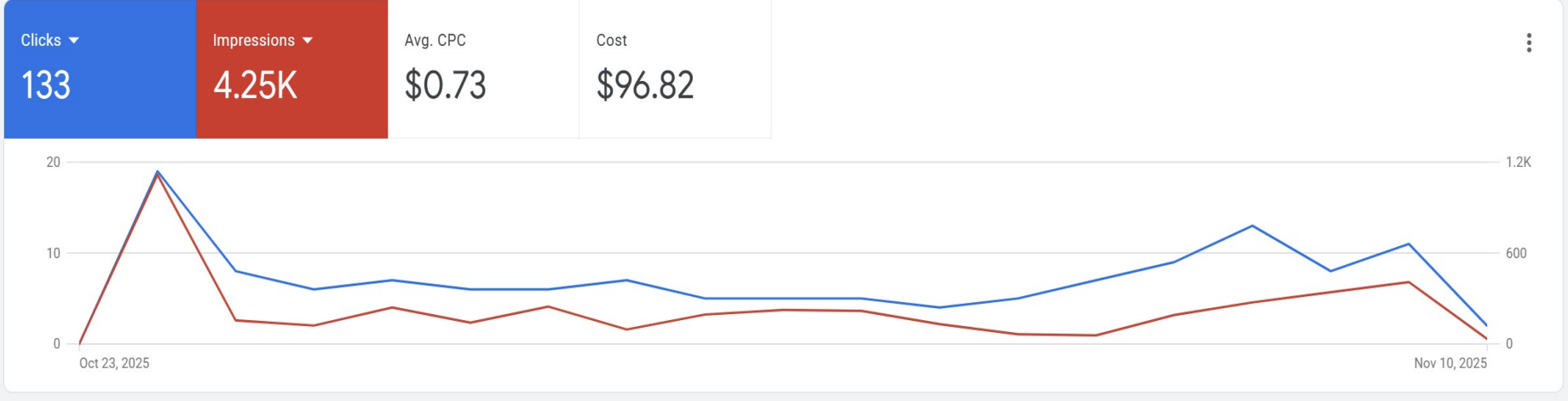 One of the most valuable parts of this experience was analyzing where clicks were coming from and learning how to optimize campaigns by adjusting keywords and ad performance to effectively use the full budget. This project gave me hands-on experience with paid advertising, campaign optimization, and data-driven decision-making, and showed me how impactful digital advertising can be when done strategically.